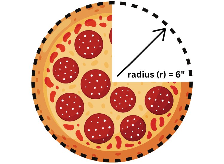 If you want a more calculated answer, do the math to figure out the area of the pizza (A=π r2). In this example, the radius is 6″ – which helps us conclude the area to be 113.1 inches.