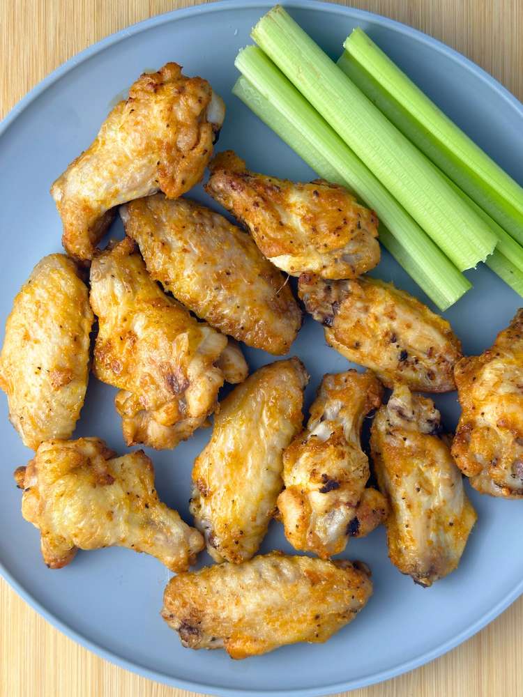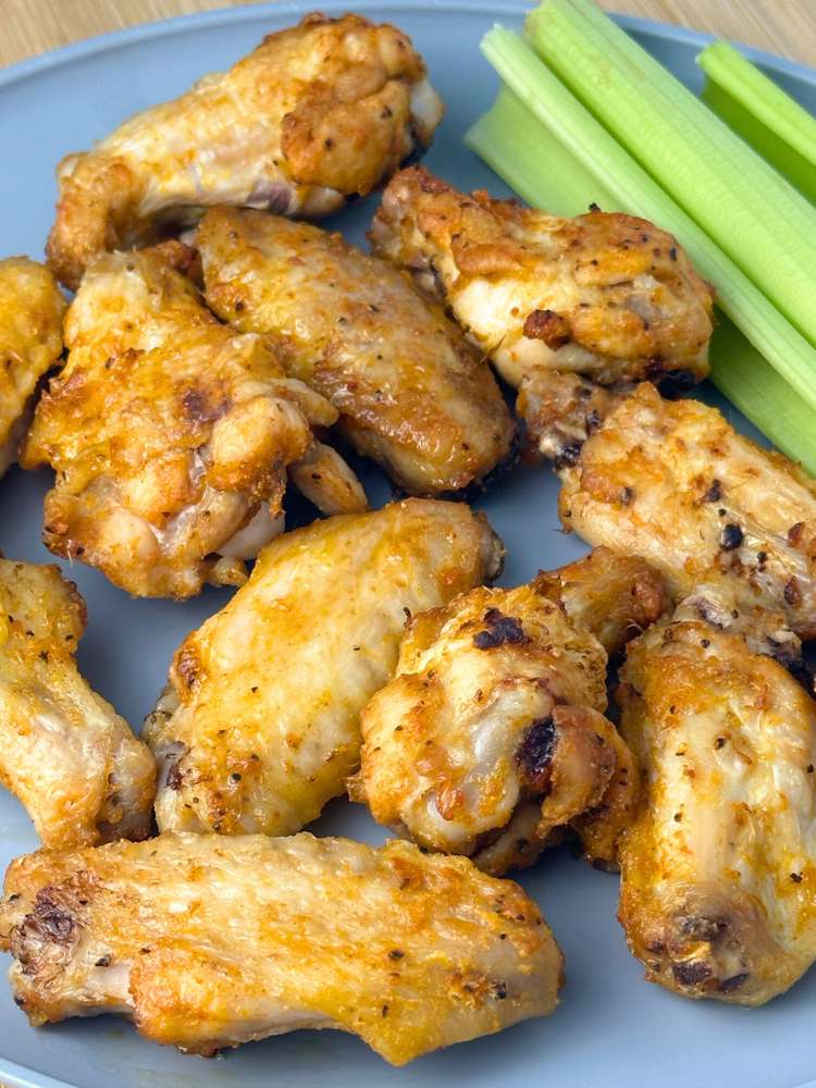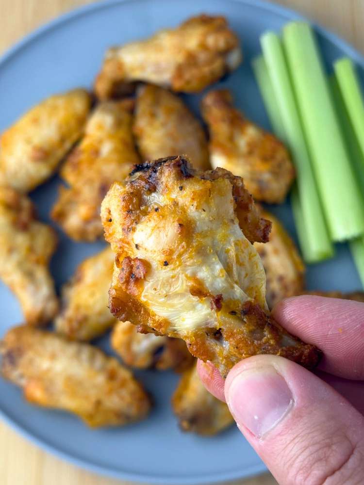 Air frying is my favorite method for cooking chicken wings. It’s not only super easy to use, but they come out so crispy on the outside you will think they were deep fried.