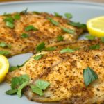 - Remove the tilapia from your air fryer before adding fresh parsley and lemon.
