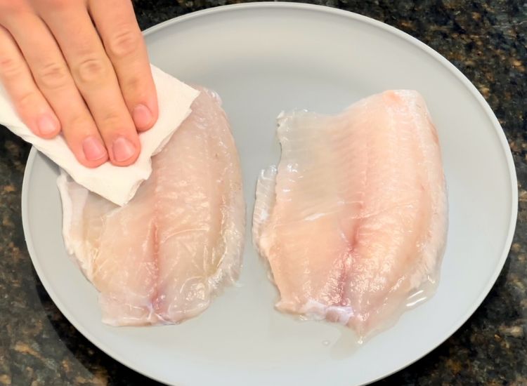 - Pat dry each fillet with a paper towel to remove any excess water.