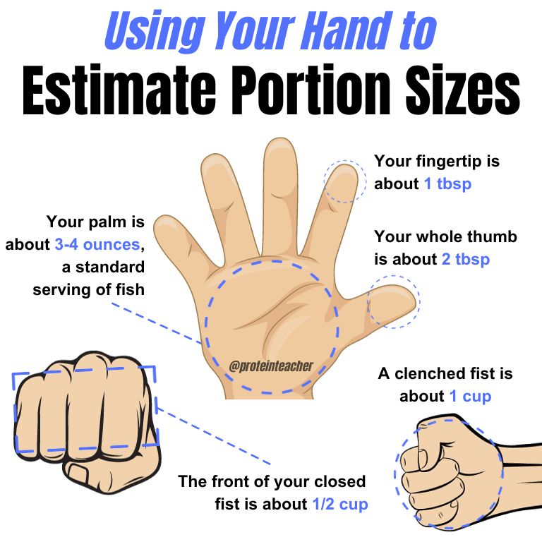 That’s about the size and thickness of an adult’s palm. Comparing portion sizes with your hand can be a great way to measure food when you need to guess.