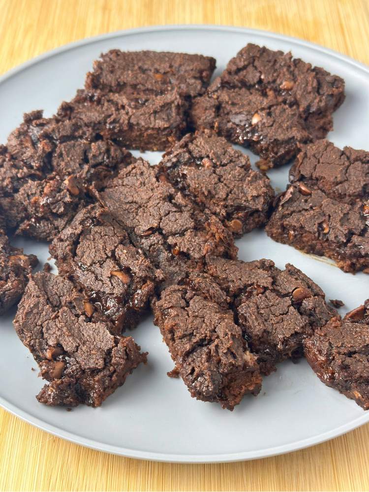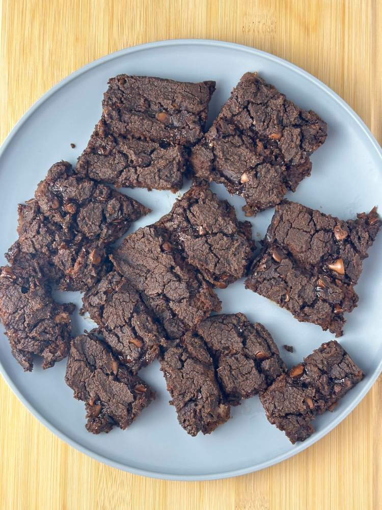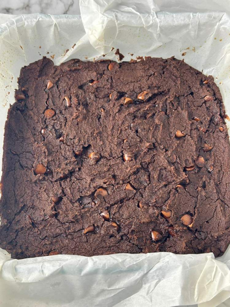 Bake for 20-30 minutes and allow the chickpea brownies to cool before eating.