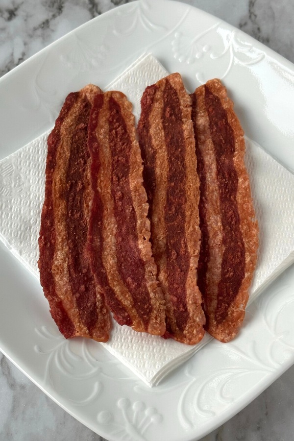 Lastly, make sure to remove the turkey bacon from the paper towels quickly. After a few minutes the slices will begin to stick – which will make them hard to remove.