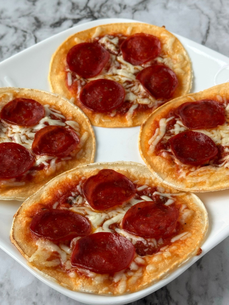Yes! These mini corn tortilla pizzas are much healthier than traditional pizza. Turkey pepperoni, part-skim mozzarella cheese, and corn tortillas will significantly reduce the amount of total calories.