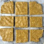 Once the mixture has bonded together, remove the dish from your freezer and cut into 9 square bars. Enjoy once thawed and store any remaining bars in freezer.