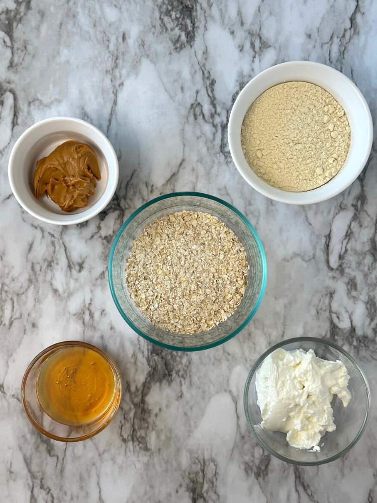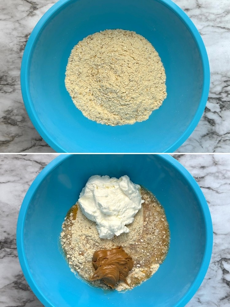 - Combine oatmeal and protein powder in a large mixing bowl.