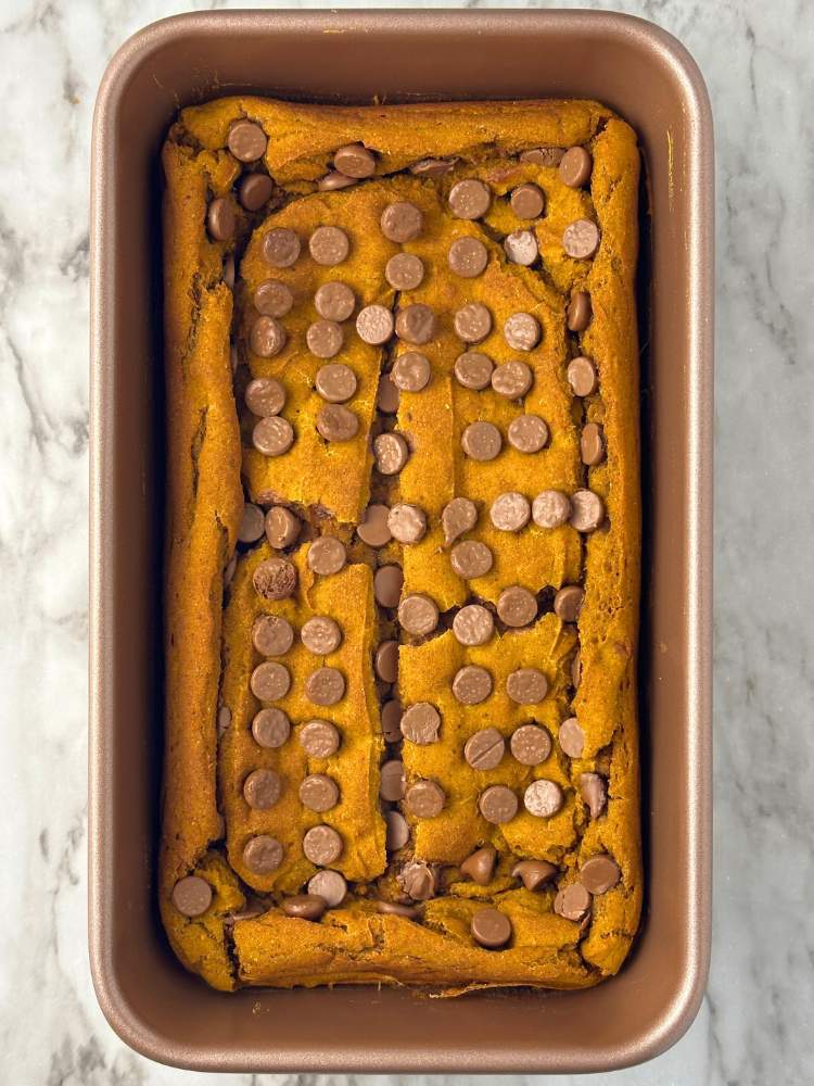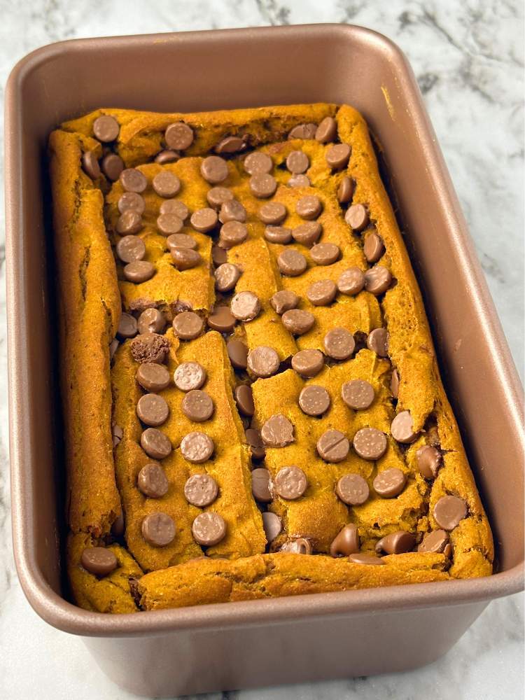 Top it off with a handful of chocolate chips and you’re all set! You can enjoy this protein pumpkin bread as a post-workout snack, or try it for breakfast with a cup of coffee.