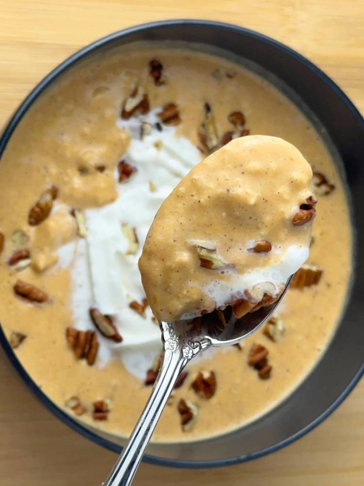 With 22 grams of protein, these pumpkin pie overnight oats are the perfect way to start your day! Plus, you can load them up with toppings to customize them to your liking!